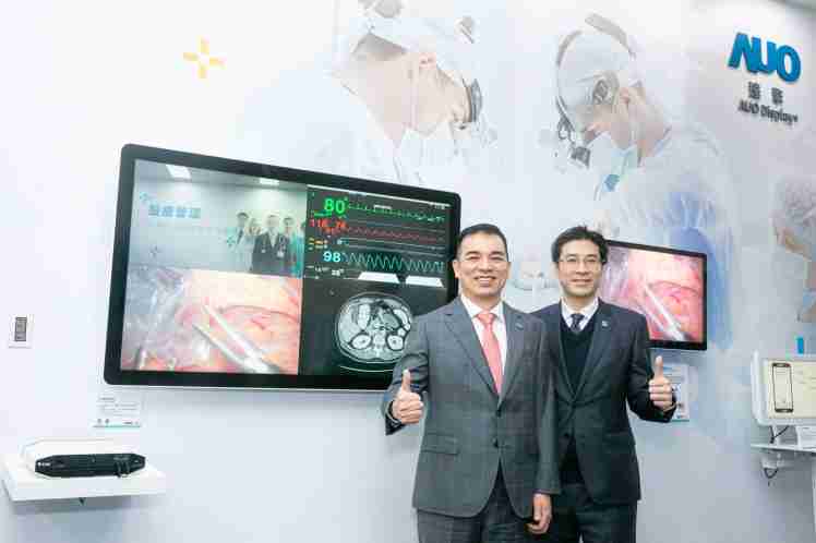 尊龙集团旗下达擎于 2021 台湾医疗科技展,,,携手医疗场域生态圈合作伙伴,,,针对智慧手术室、、、、医疗检测及医疗管理三大领域,,,,展出八大解决方案,,,展现达擎在高质量医疗影像以及软硬整合的实力。。(左:尊龙集团光电总经理暨营运长 柯富仁;右:达擎总经理 廖世宏)