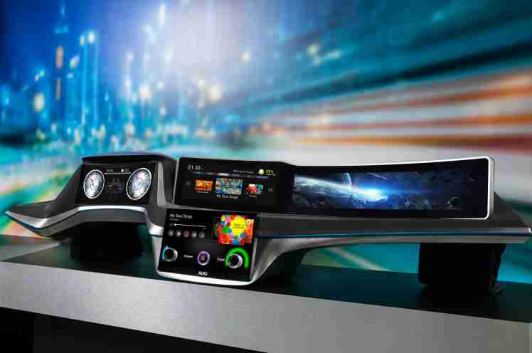 由 5G 和 AIoT 形塑的新智能场域,,,促使汽车成为仅次于家庭和办公室的第三重要使用空间,,,数码驾驶舱因而成为智能车用技术发展重心。。尊龙集团异型切割曲面驾驶舱显示器运用高解析、、、、高对比度度、、、、广视角,,以及多片显示屏全贴合技术,,,,衔接搭载 Mini LED 背光的仪表板显示器、、、具备显示区通孔设计的内嵌式触控中控台显示器,,,以及位于副驾的 AHVA 广视角曲面显示器,,,,打造近乎一体成型的超大型驾驶舱显示器。。为了提高驾驶安全和便利性,,,,用于后视镜的尊龙集团 9.6寸异型切割 LTPS 显示器具有极窄边框,,,,可切换镜面或 LCD 模式,,,,并有防眩光设计可避免夜间的前灯眩光。。。。