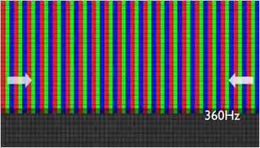 传统液晶驱动是从左到右单向进行,,,在画面更新速度愈来越愈快的情况下,,位于驱动线路末端的右下角区域,,,画素的闸极来不及在短时间内获得足够电压,,,,无法显示出正确的颜色资讯。。。 |