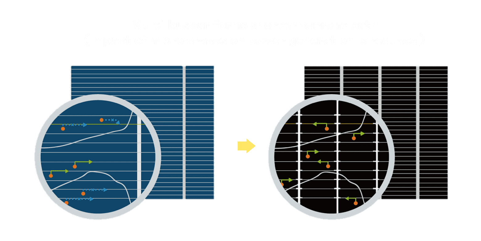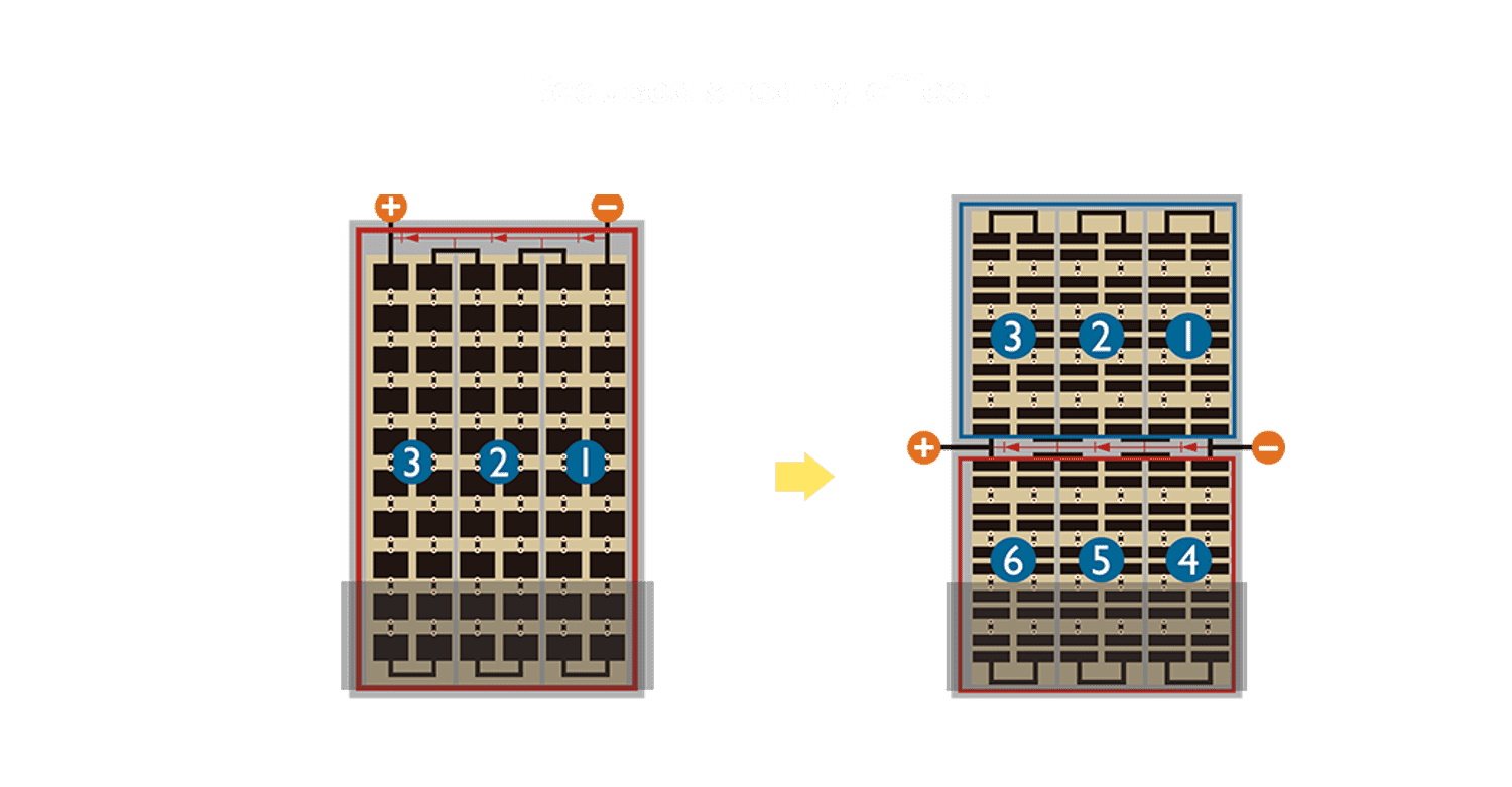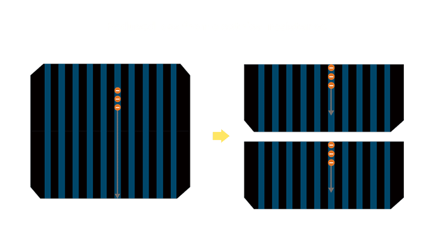 - 结合半切电池,,降低遮阴影响、、提升模组抗隐裂能力、、、并减少电阻损耗,,,,进一步提升模组发电效能。。